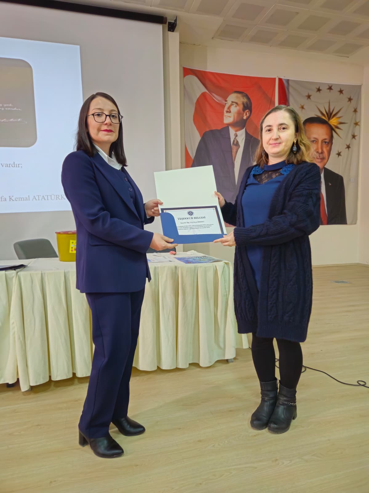 Hemşirelik Bölümü öğrencilerine yönelik "Uygulama Dersi için Oryantasyon Eğitimi Etkinliği" öğretim seminerinde, Dr. Öğr. Üyesi Derya Şimşekli tarafından "Sağlık Bakımı İlişkili Enfeksiyon Hastalıkları", Arş. Gör. Rumeysa L. Toraman tarafından ise "Ardahan Devlet Hastanesi’nin Tanıtımı" konuları sunulmuştur. Seminer sunumları sonunda Dr. Öğr. Üyesi Derya Şimşekli'ye ve Arş. Gör. Rumeysa L. Toraman'a sunumları için Hemşirelik Bölüm Başkanı Doç. Dr. Bahanur Malak Akgün teşekkür belgelerini takdim etti.